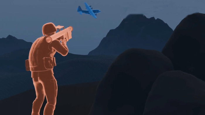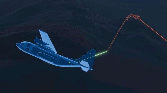 AN/AAQ-24(V)红外对抗系统由两部分组成,包括红外告警传感器和激光干扰器,能够自动探测、跟踪并发射调制激光束,干扰来袭导弹红外导引头使其偏离目标。传感器负责探测红外制导武器是否来袭,根据飞机大小体型不同,配套的导弹告警探头数量也不一样,大型机可以装备5-6个,小型或直升机可以装2-3个,基本做到全向感知全覆盖。
