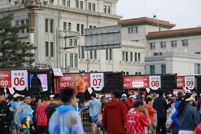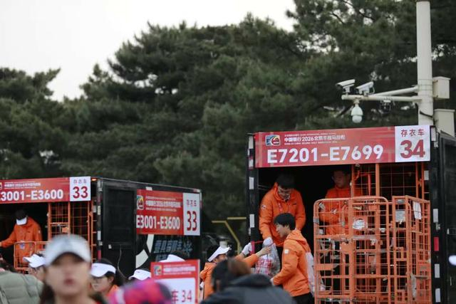 4月12日凌晨5点,志愿者等工作人员陆续到达现场,40辆专业存衣车来到赛场,为参赛选手提供衣物存取服务。今年,每辆存衣车配备6个标准化笼车,按选手参赛编号分区、分段标识。选手可凭存衣车号与参赛号段,快速定位衣物存放位置,实现“快速存、有序取”,有效压缩赛后取衣时间,避免选手因等待过久出现失温等身体不适。
