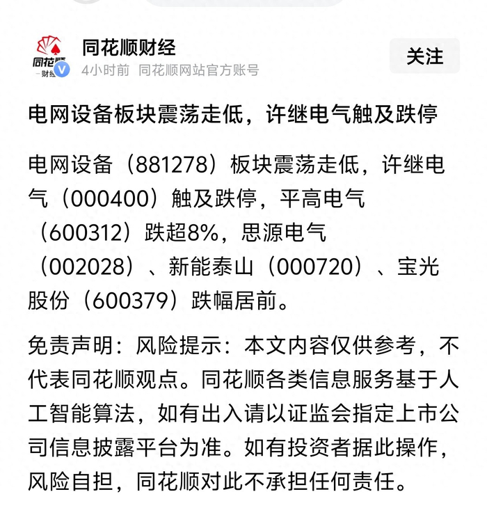 本文仅为市场行情解读与逻辑分析,不构成任何投资建议。电网设备板块受宏观政策、行业订单周期、市场情绪及资金流动等多重因素影响,存在较大波动风险。投资者应结合自身风险承受能力独立做出决策,谨慎参与。